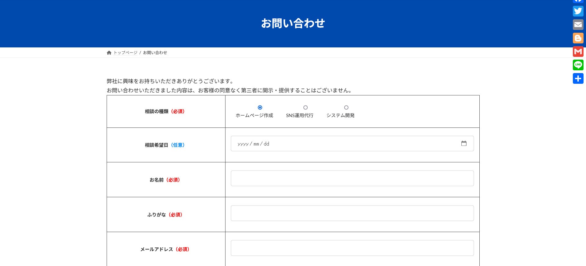・お問い合わせ内容の項目変更ができます。基本プランではできない設定です。