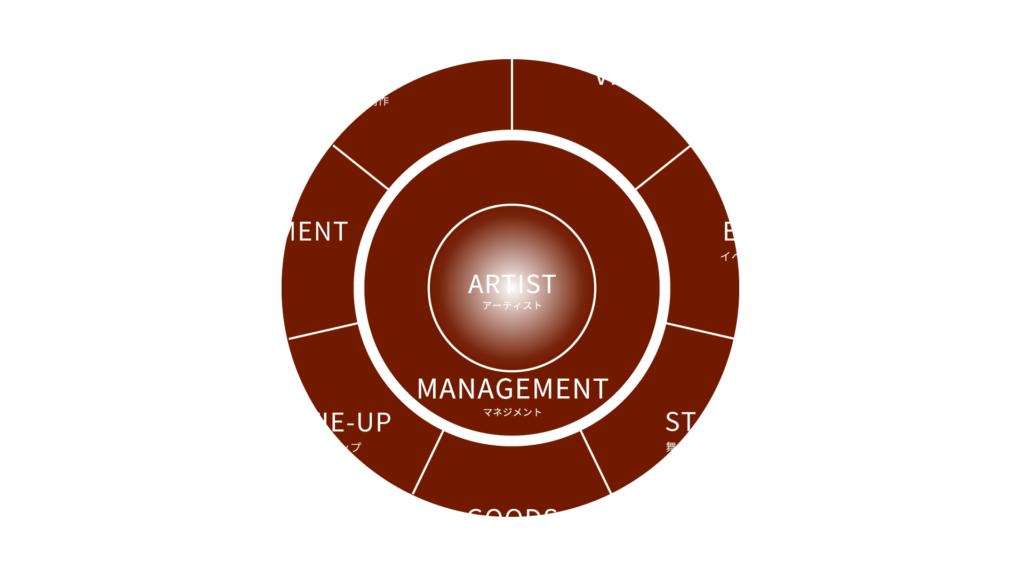 アーティストを中心にコンテンツを創造し、それらを様々なかたちで世の中に届けることを事業の根幹としてきました。