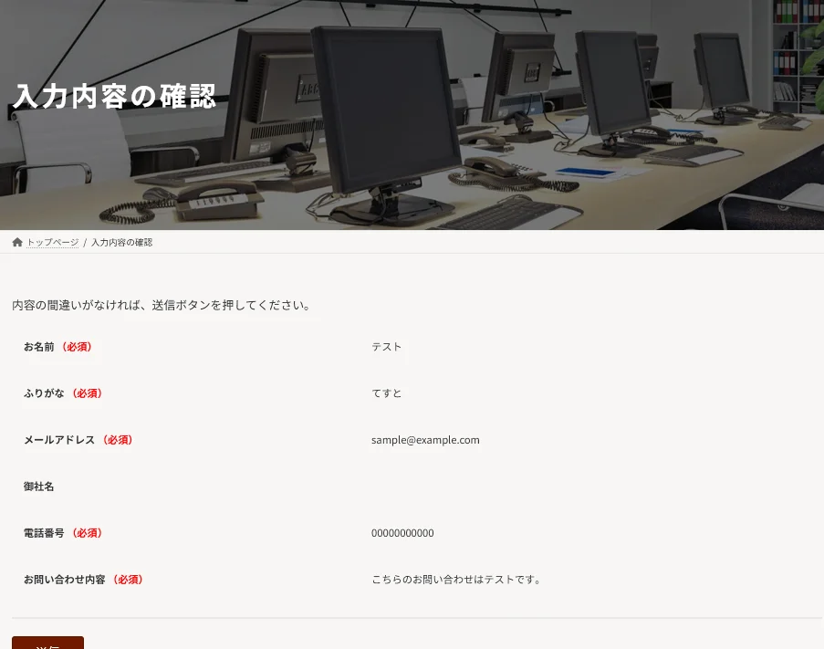 当サイトでは、お問い合わせフォームに確認画面と完了画面を追加しております。
