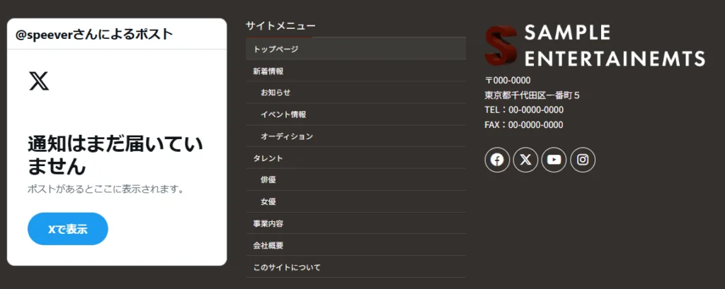 当サイトでは、お知らせ投稿機能の他に「イベント情報」「オーディション情報」「タレント」の投稿機能を追加しております。