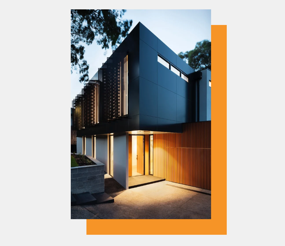 ◁ こちらでは、画像に合わせてオレンジの背景を設定してデザインを印象付けております。