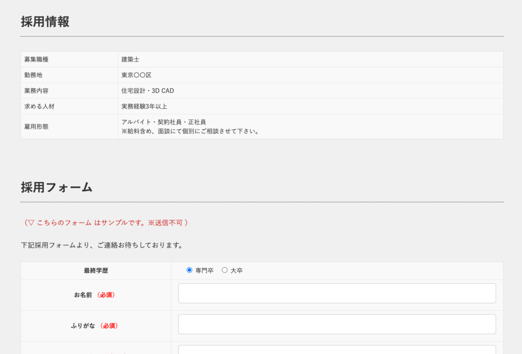 ◁ 採用募集の場合、専用の"採用フォーム"を用意することで、求人受付もスムーズになります。