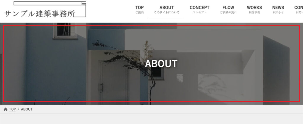 各ページの上部(画像:赤枠の部分)には、そのページ名が表示されます。通常は高さや背景色が決まってますが、調整が可能です。